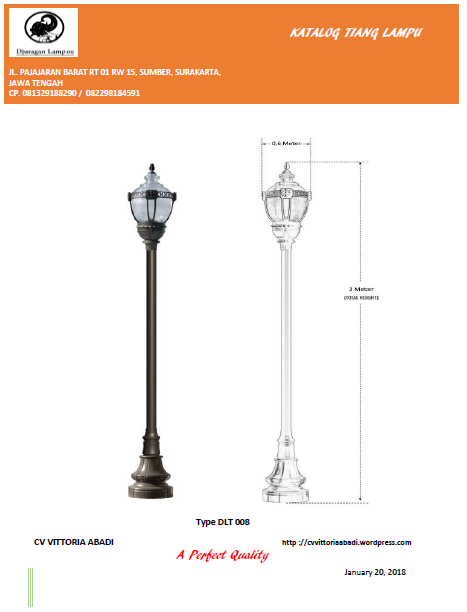 Dapatkan Spesifikasi Harga Tiang Lampu Taman Type DLT008 Produk Terbaik dari Vittoria Abadi DJURAGAN LAMPOE