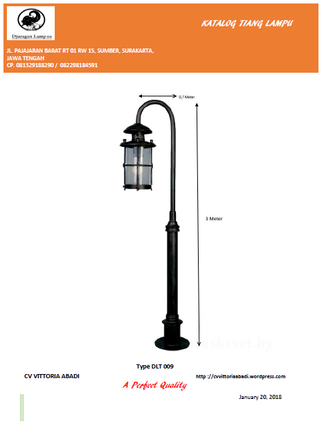 Dapatkan Spesifikasi Harga Tiang Lampu Taman Type DLT009 Produk Terbaik dari Vittoria Abadi DJURAGAN LAMPOE