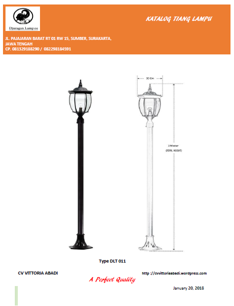 Dapatkan Spesifikasi Harga Tiang Lampu Taman Type DLT011 Produk Terbaik dari Vittoria Abadi DJURAGAN LAMPOE